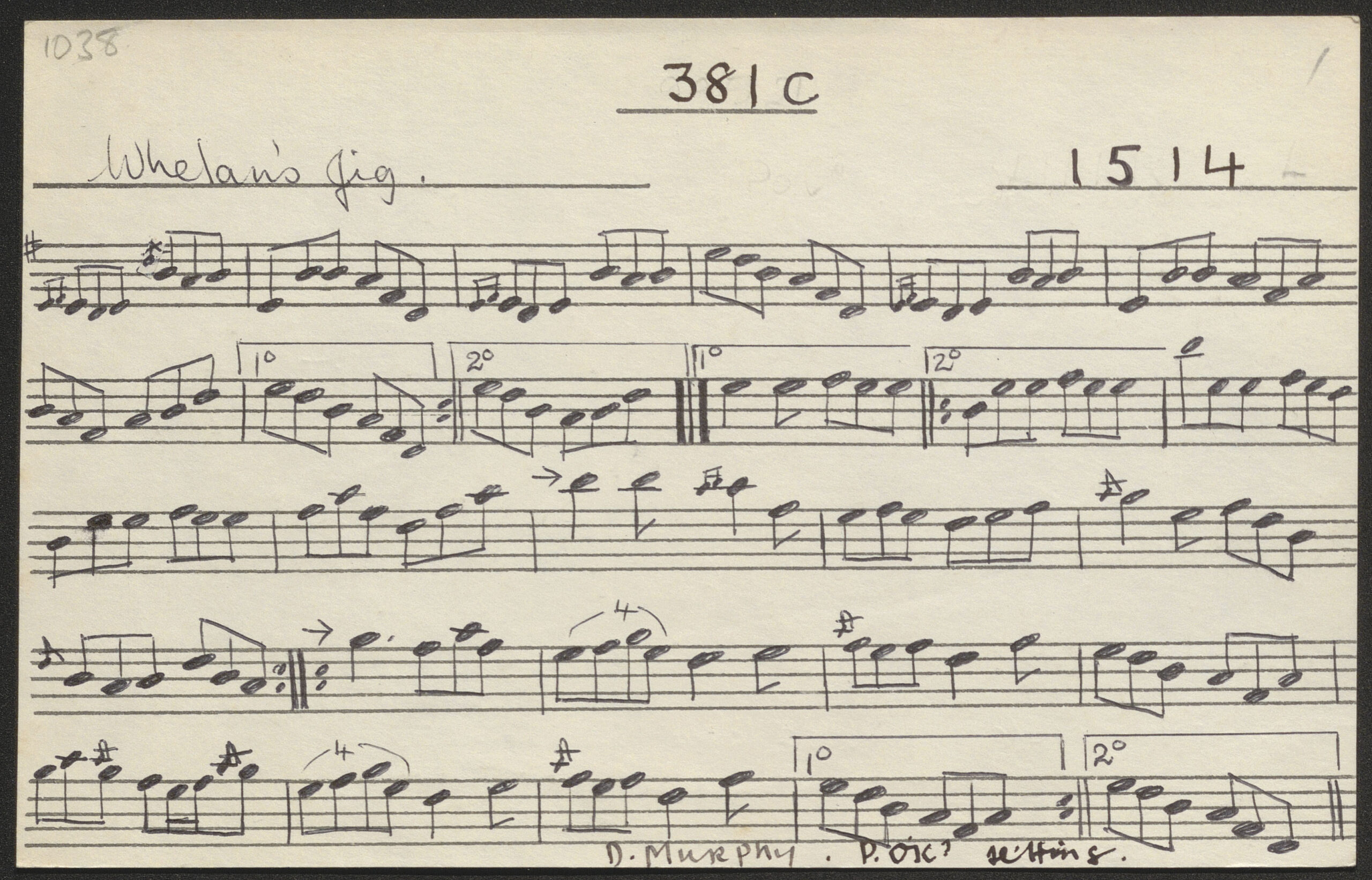 • 2. [Tom Billy's] Whelan's [Lyons' Favourite; Stick across the hob; O'Keeffe's Morrison's], jig / Denis Murphy, fiddle