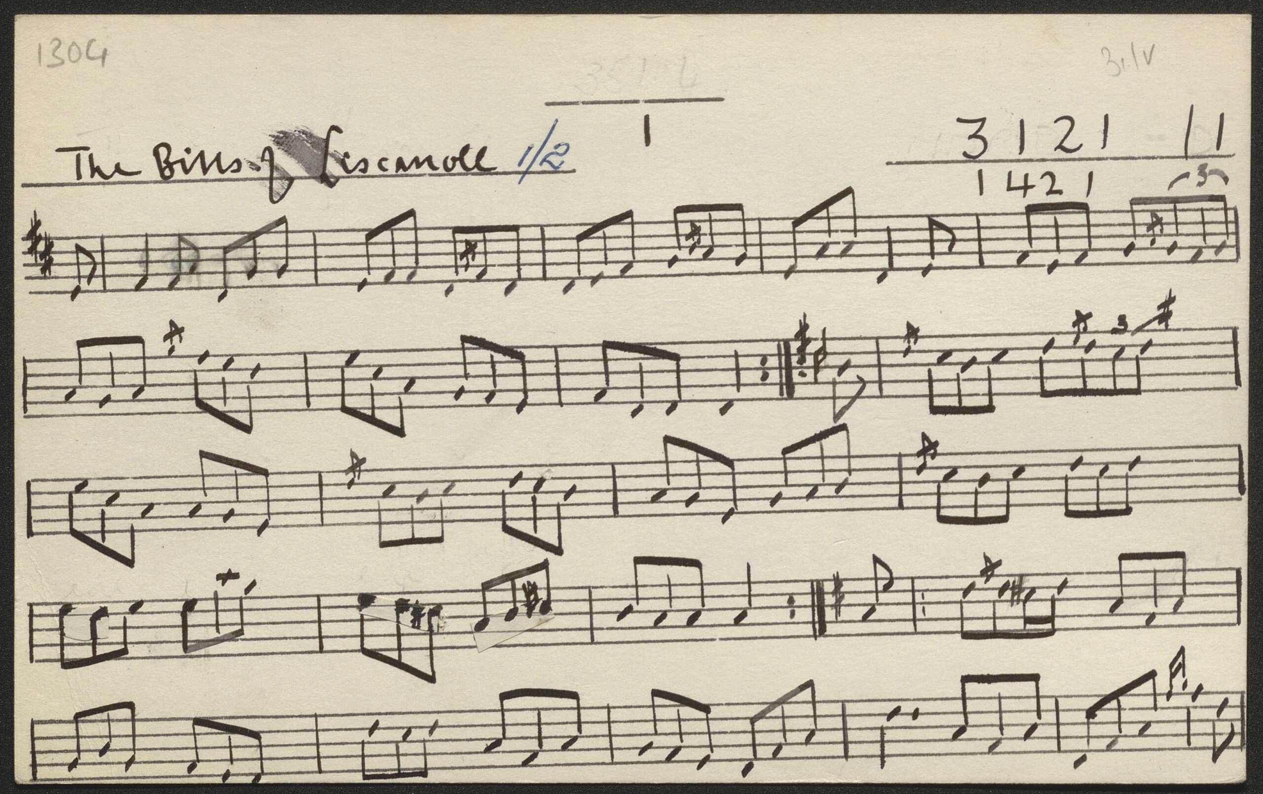 The bills of Liscarroll [The belles of Liscarroll; The old walls of Liscarroll], jig. CICD 1304. Collected in Co. Kerry in 1966.