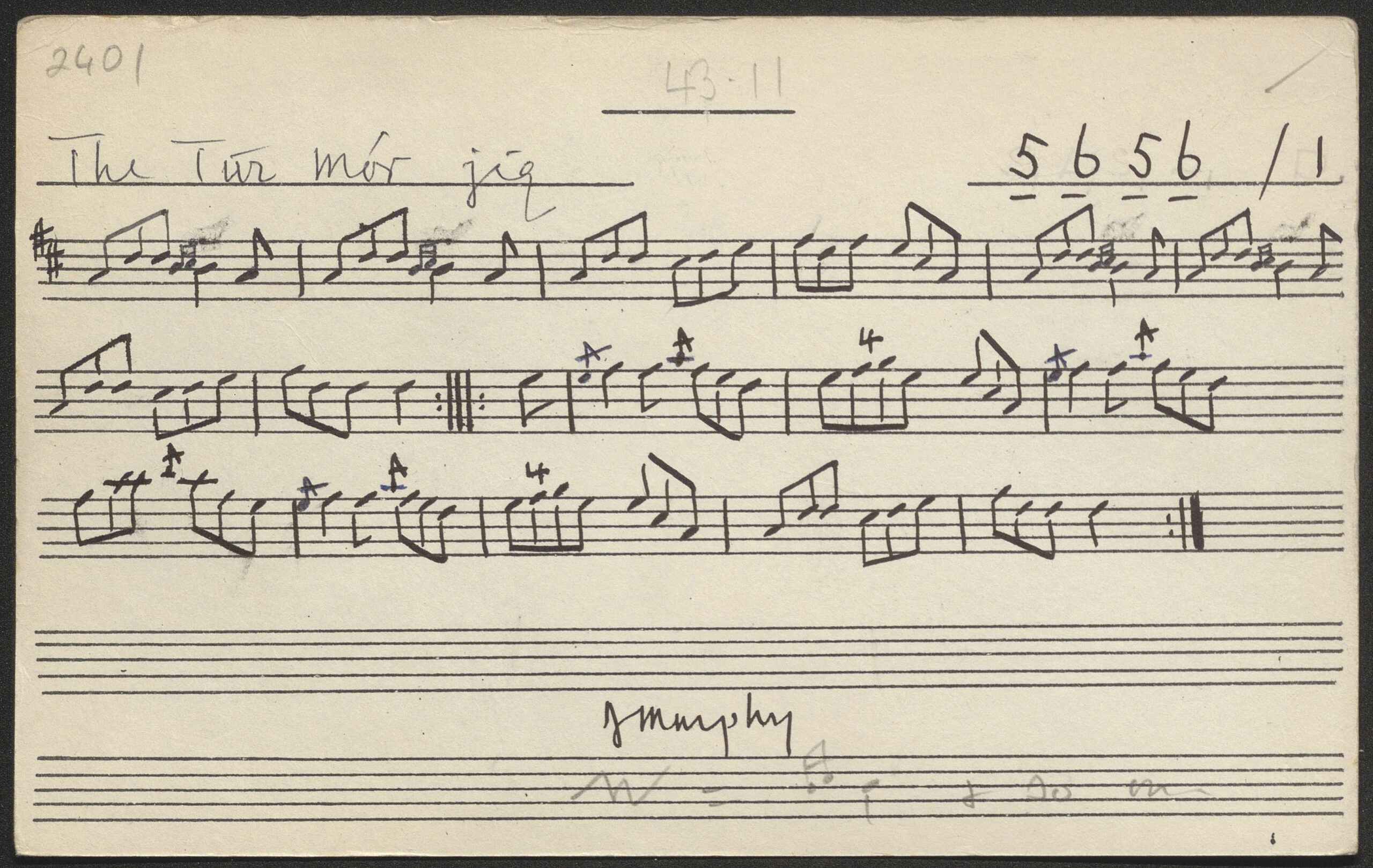 Túr Mór [The Toormore; The oak stick], jig. CICD 2401. Collected in Co. Kerry in 1967.