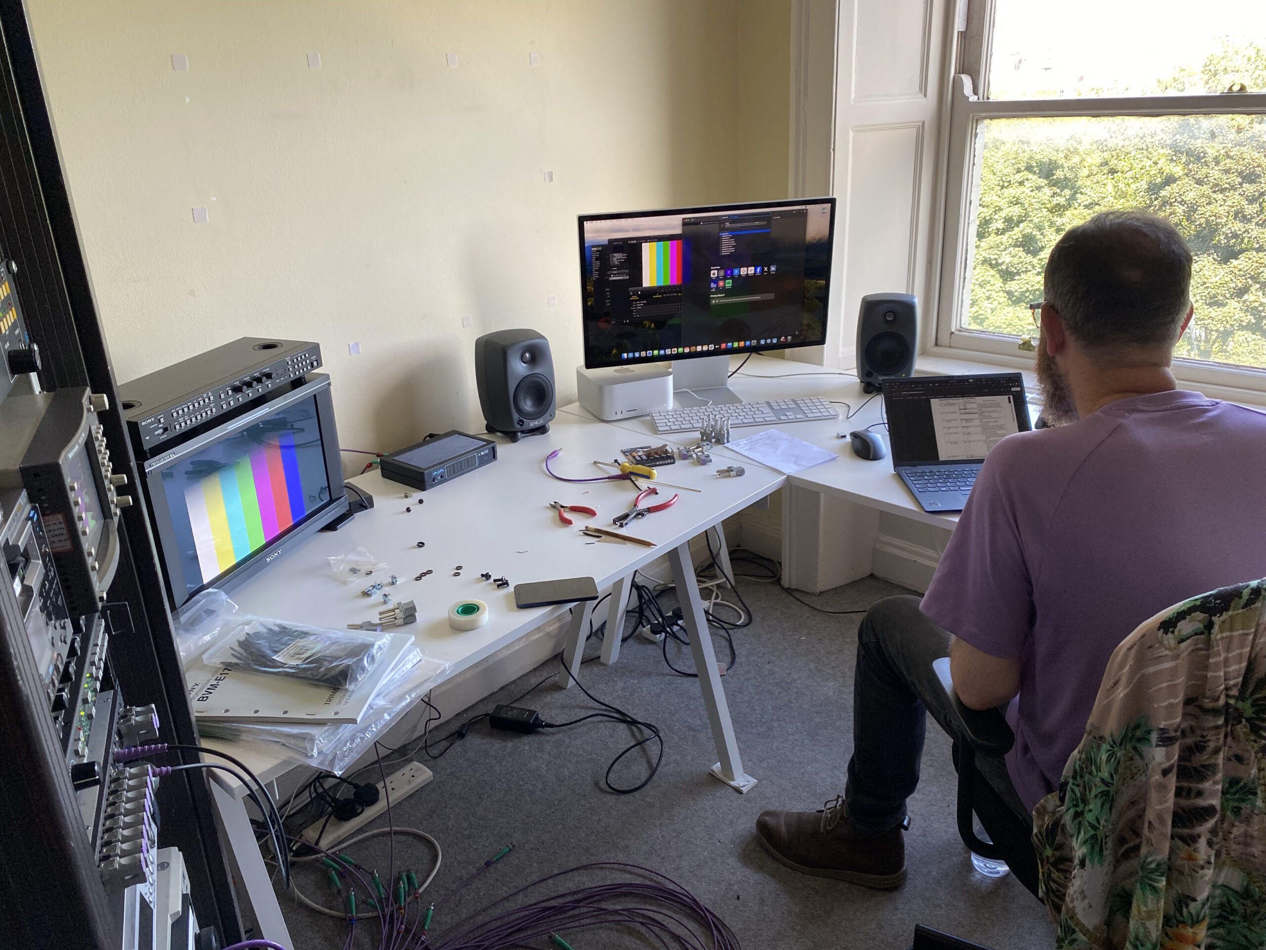 Adrain Finn owner of Greatbear Audio and Video Digitising Ltd installing the ITMA video digitisation suite, August 2024