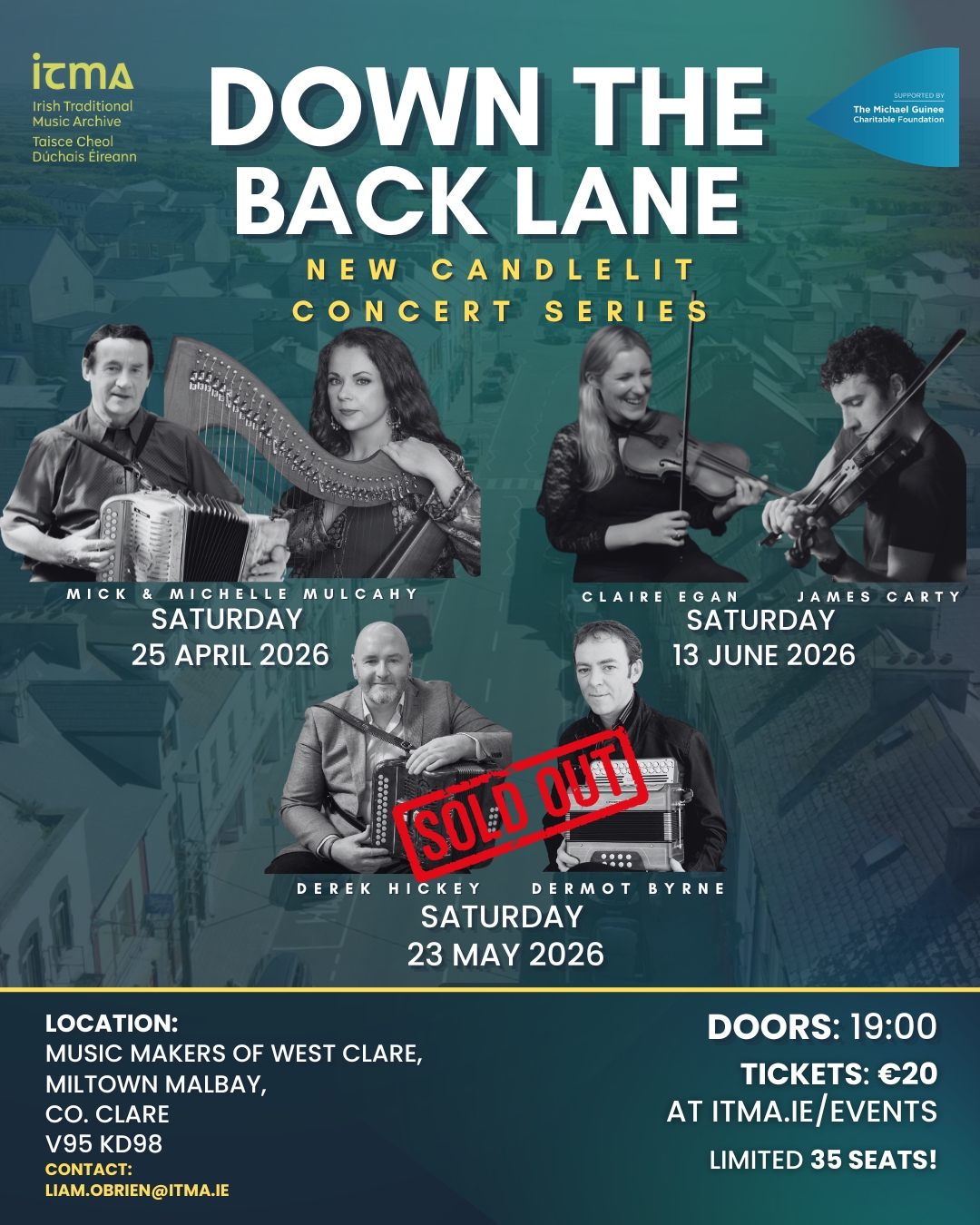 Down the Back Lane is a new concert series from the Irish Traditional Music Archive in Miltown Malbay, presenting unique, candlelit listening experiences showcasing some of the finest artists in Irish traditional music. With just 35 seats available, these concert offer a rare chance to hear masters of the tradition in an intimate setting.